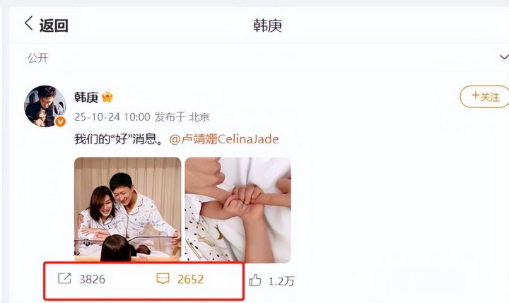 2025年5月,卢靖姗在《妻子的浪漫旅行2025》播出期间,首晒孕期四口全家福,照片中夫妻二人与女儿共同手持二胎B超照片,配文“咔嚓!一家四口的第一张合影”。韩庚转发回应“我们又升级啦!”这不仅是家庭的升级,更是幸福的升级。从一家三口到一家四口,他们的家庭在不断壮大,是不是也让你感受到了生命的奇妙和美好呢?